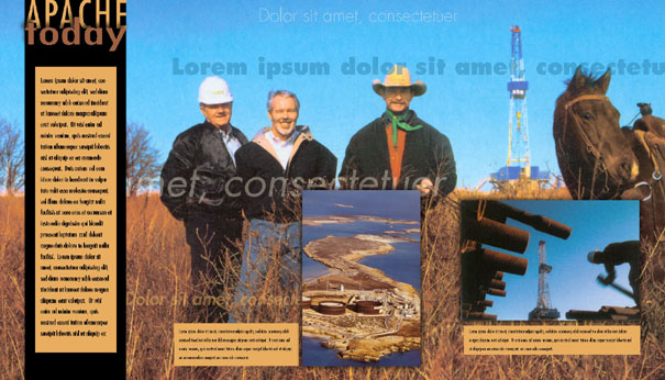 This project was in its early stages when I separated from a previous employer. The top item is a very long, wrap-around header for the rotunda of the lobby. The other 3 pieces are poster displays for the hall leading away from the lobby. | ||